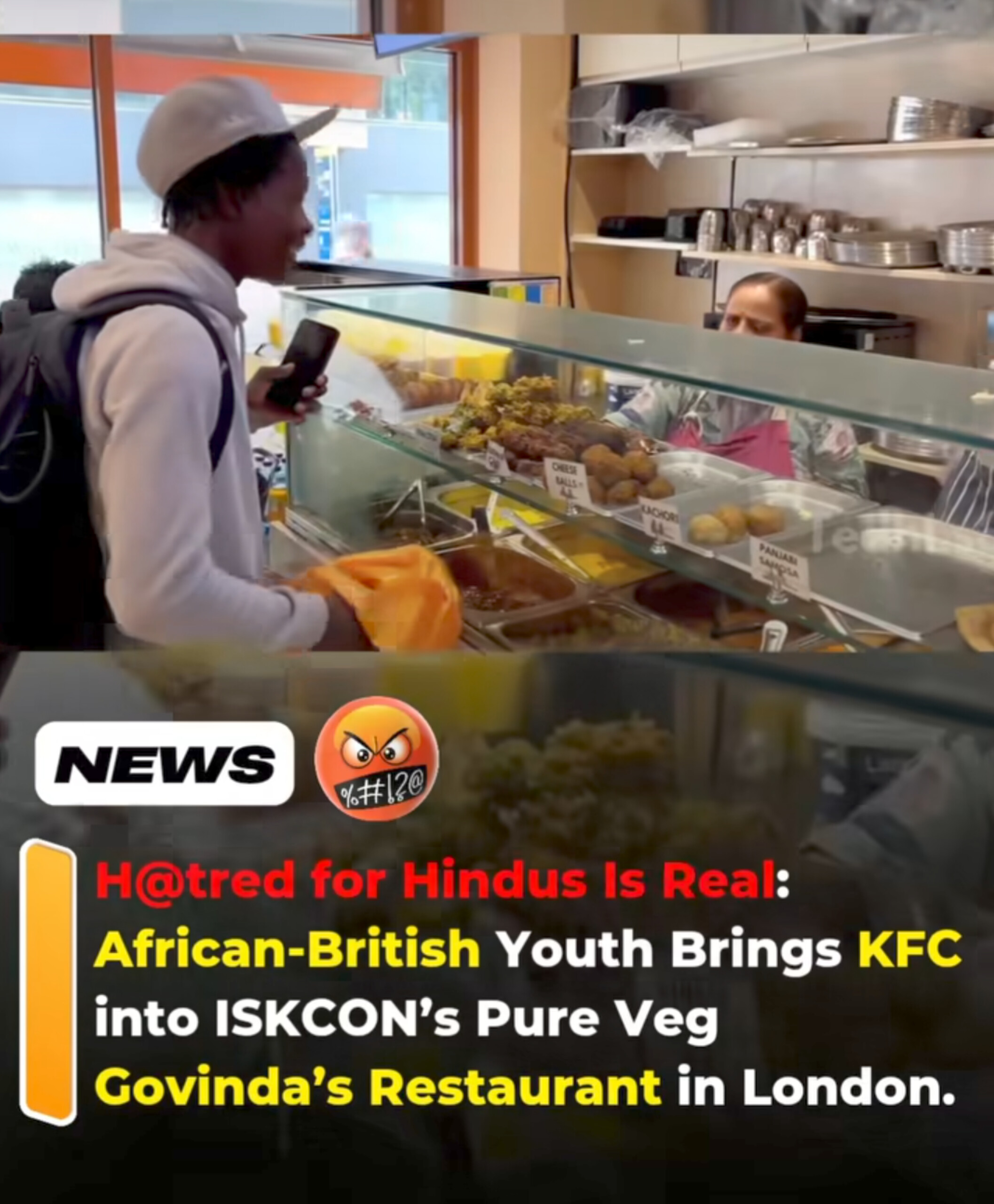 Viral News: एक ब्रिटिश अफ्रीकन ने इस्कॉन की वेजिटेरियन होटल पर KFC से मिट लाकर हिन्दू धर्म की इंसल्ट करने की कोशिश की ।