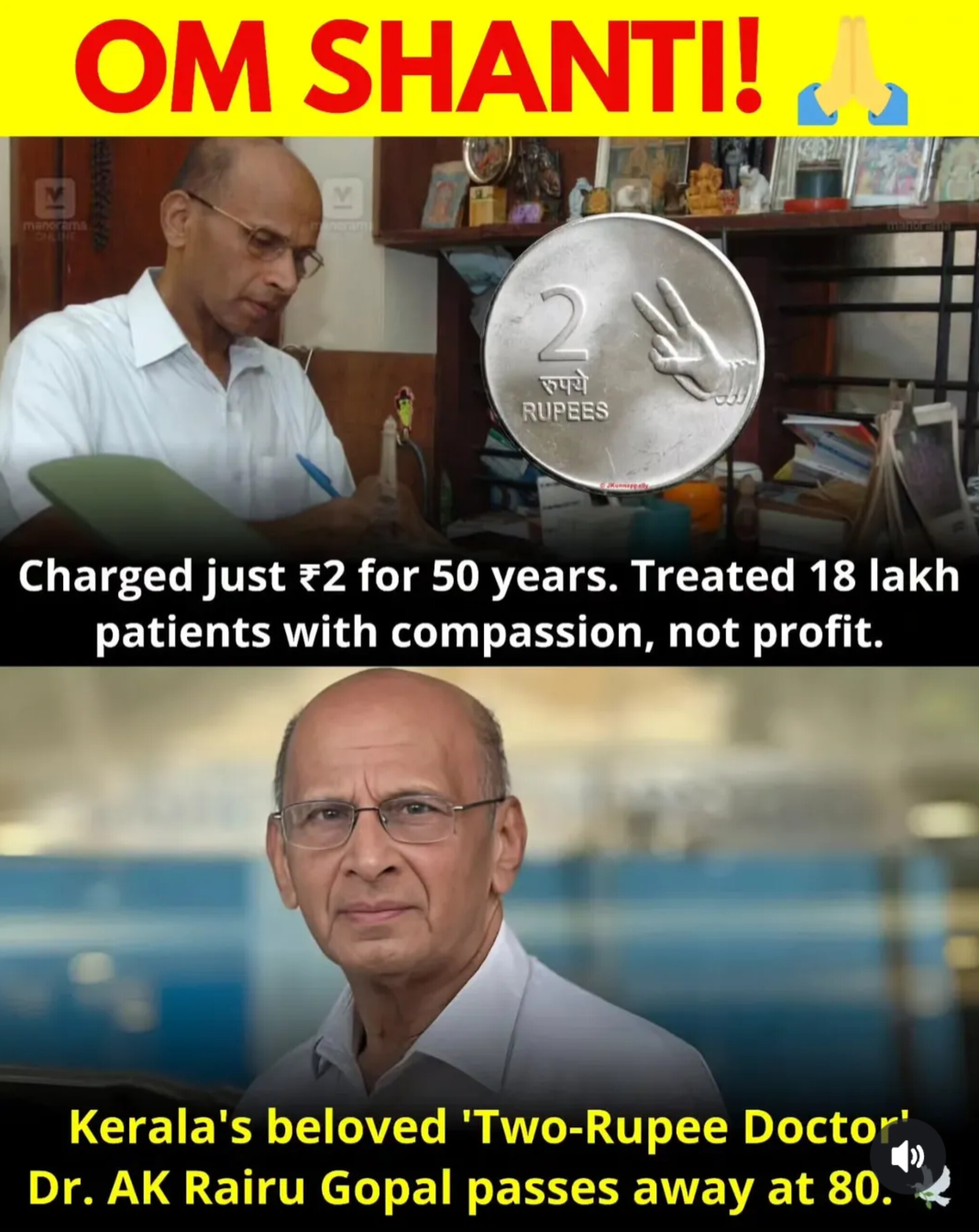 केरला के 2 रुपए डॉक्टर A K Rairu Gopal ८० साल के उम्र में अपने प्राण त्याग दी ।